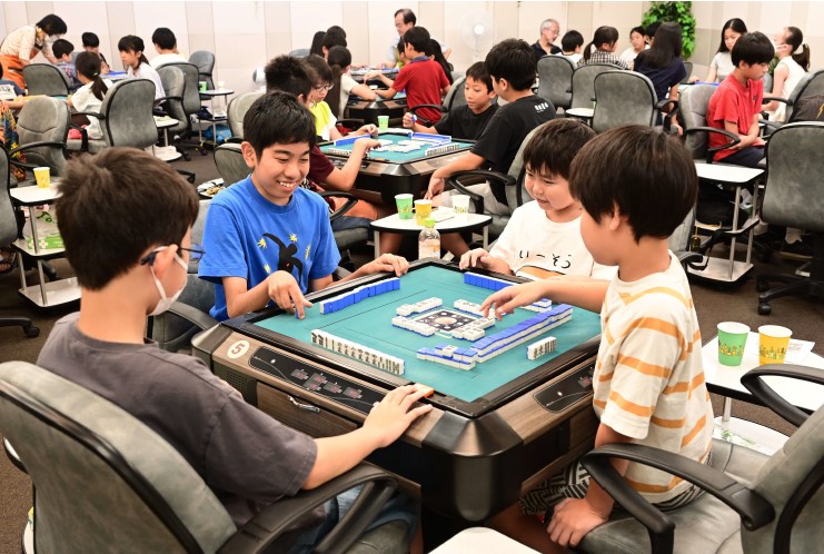 7月20日に東京都品川区の商業施設内で行われた「ニューロン子供麻雀教室 」では、小中学生約50人が「ロン」などと元気な声を響かせながら対局を楽しんだ。ルールや点数の計算など、わからないことがあれば、周りの講師たちが丁寧に教えてくれるので、初心者でも心配なしだ。