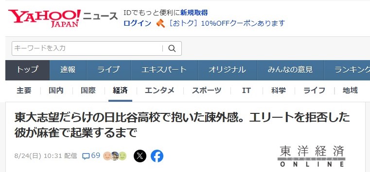 ニューロン設立者の池谷雄一を題材にした東洋経済新報社の記事がYahoo!ニュース等に掲載されました。