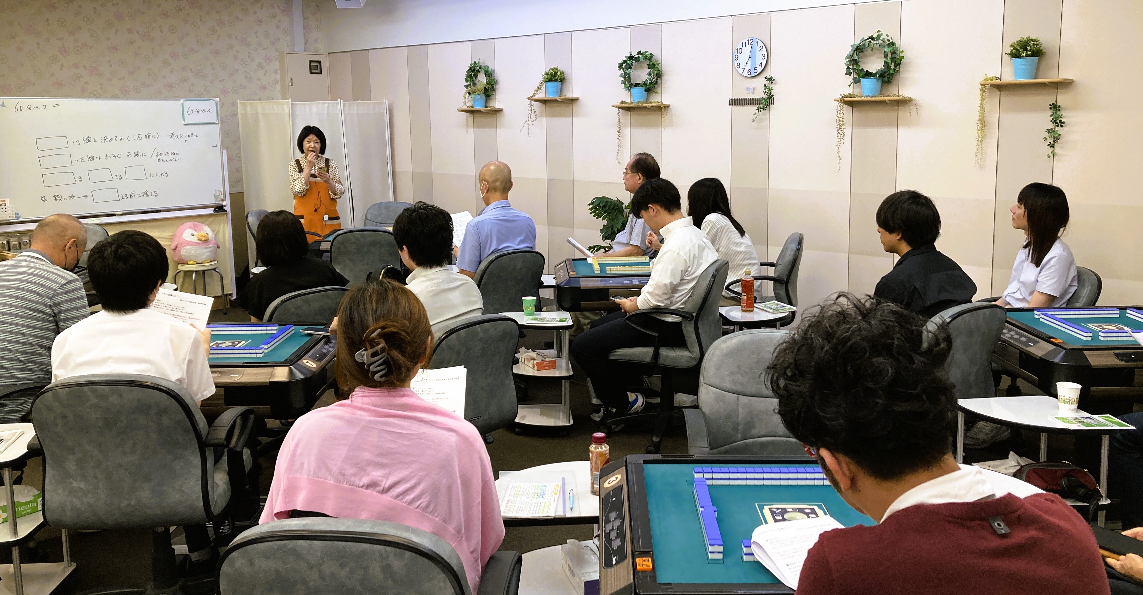 主に新人スタッフを対象とした講師研修会。今回のテーマは「教室の統率」新規対応、はじめてのリアル麻雀、点数計算の教え方のコツ、卓組みの考え方、マナー指導、トラブル対応など。構成はベテラン講師による講演や模範講義と、全員参加のロールプレイング演習。