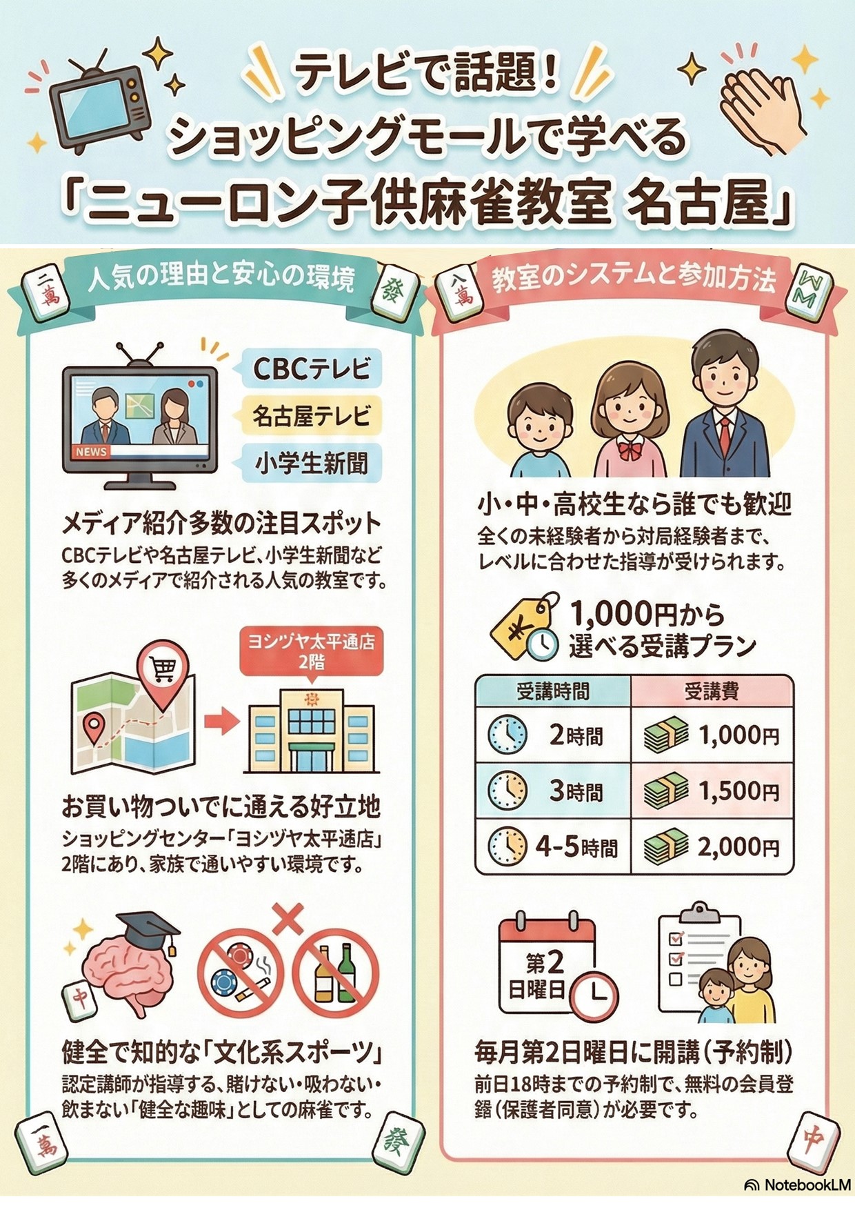 2階フロア「麻雀教室」の看板が目印