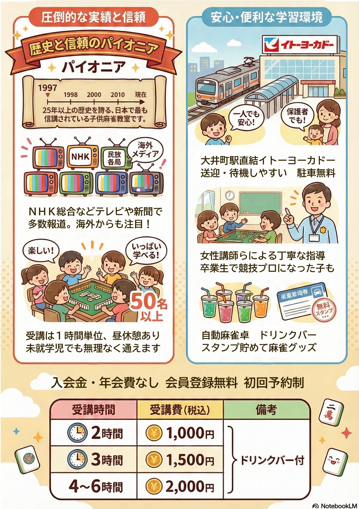 6階フロア奥の「麻雀教室」の看板が目印です。
