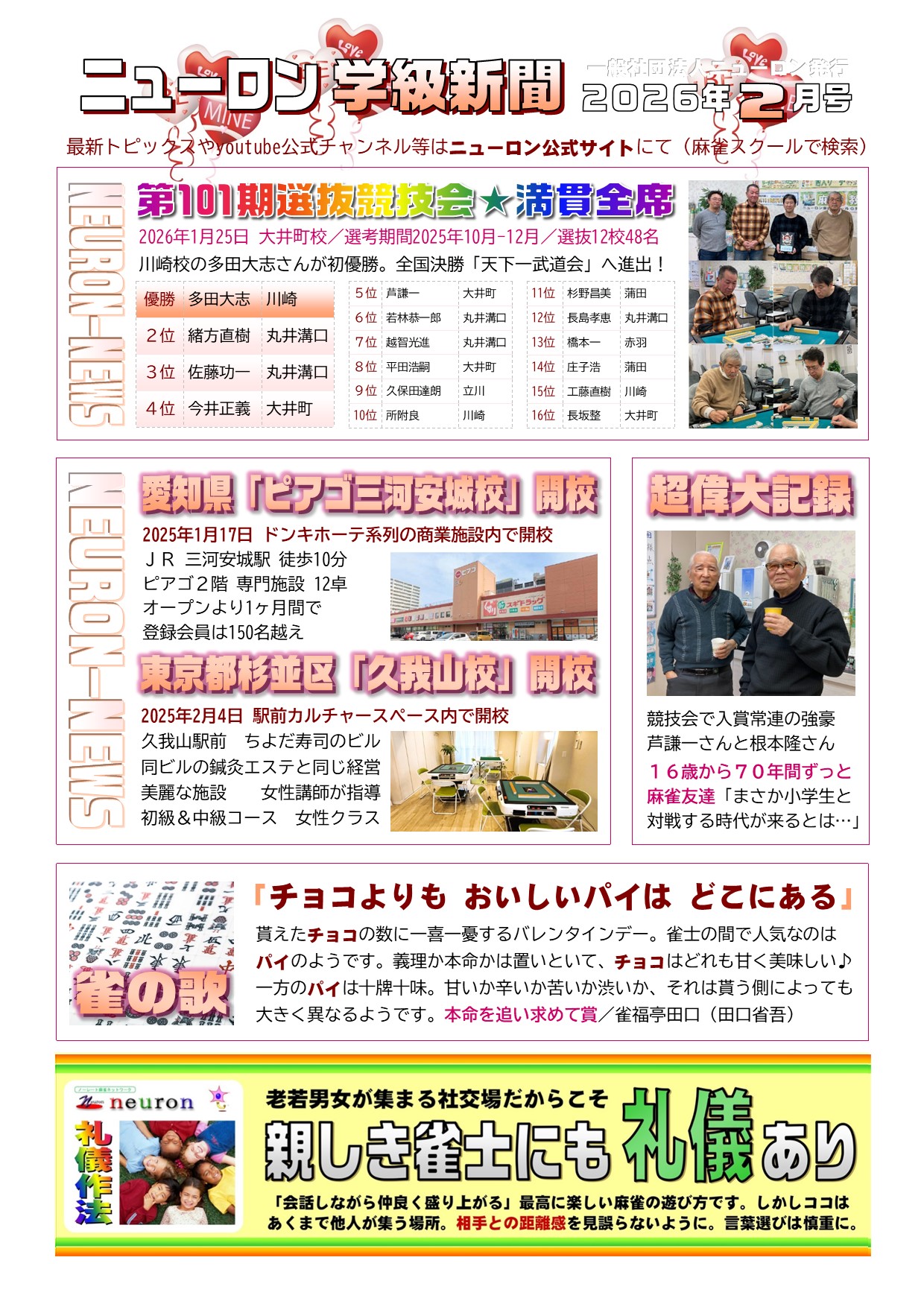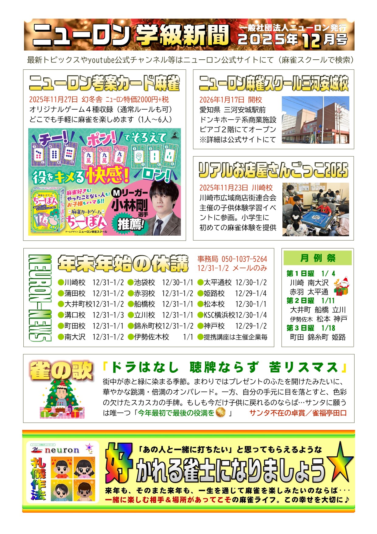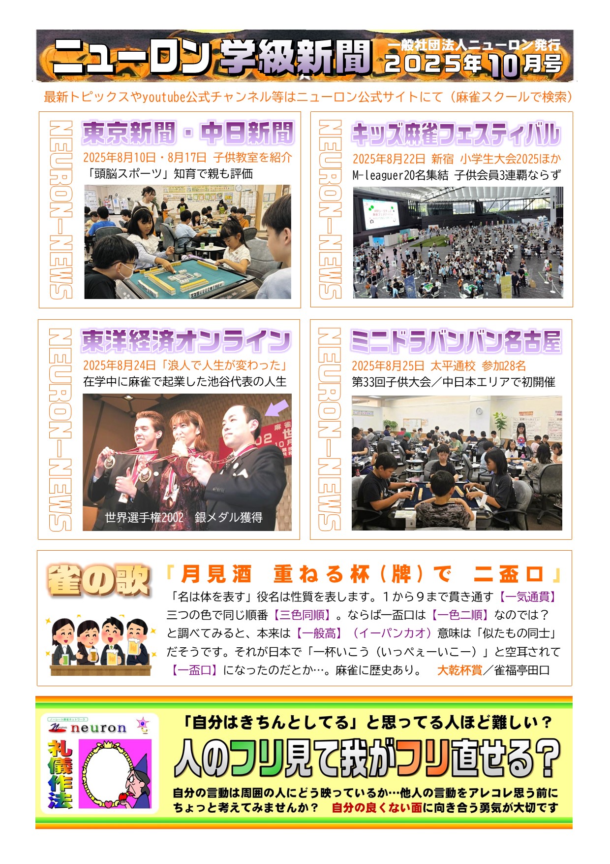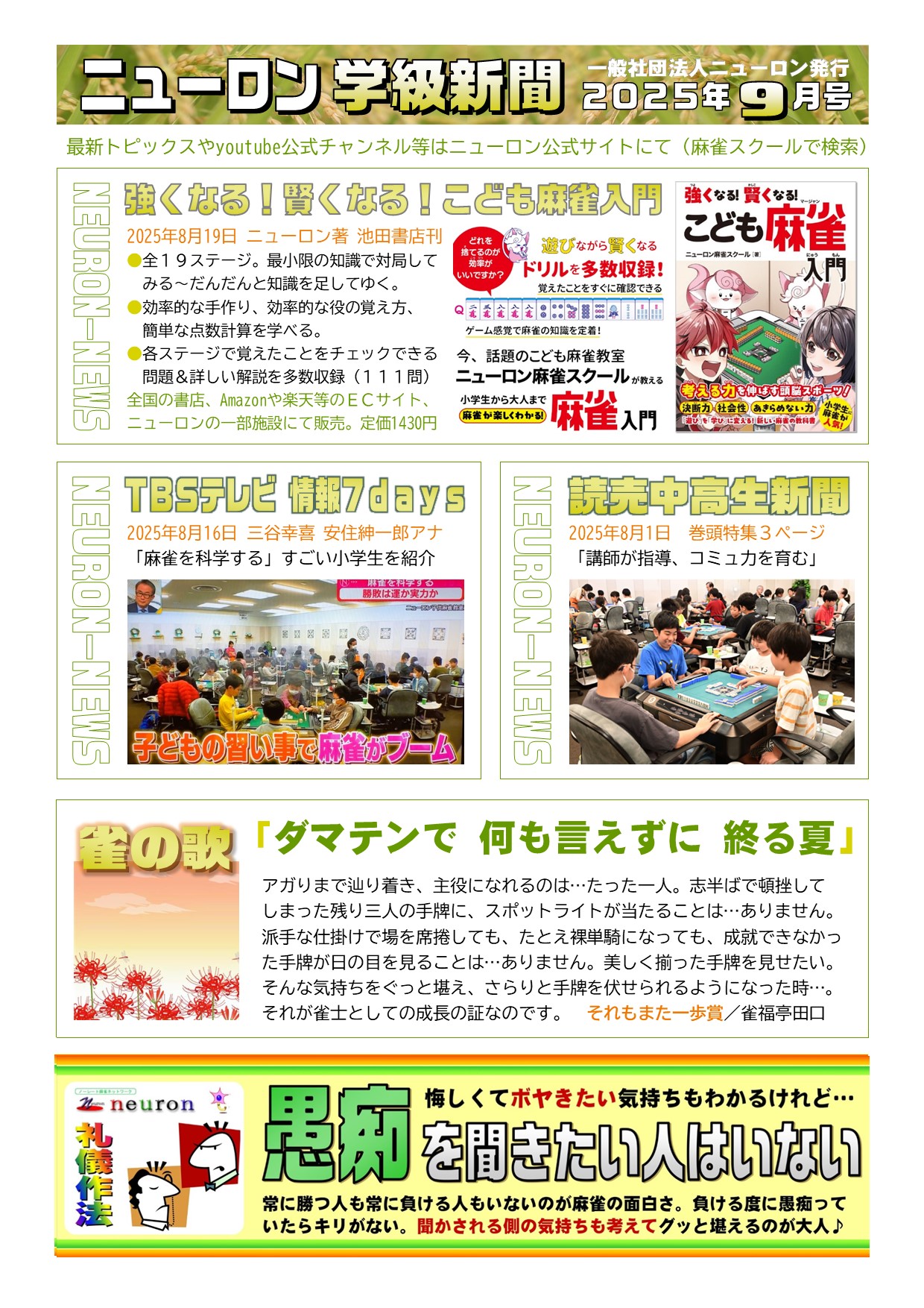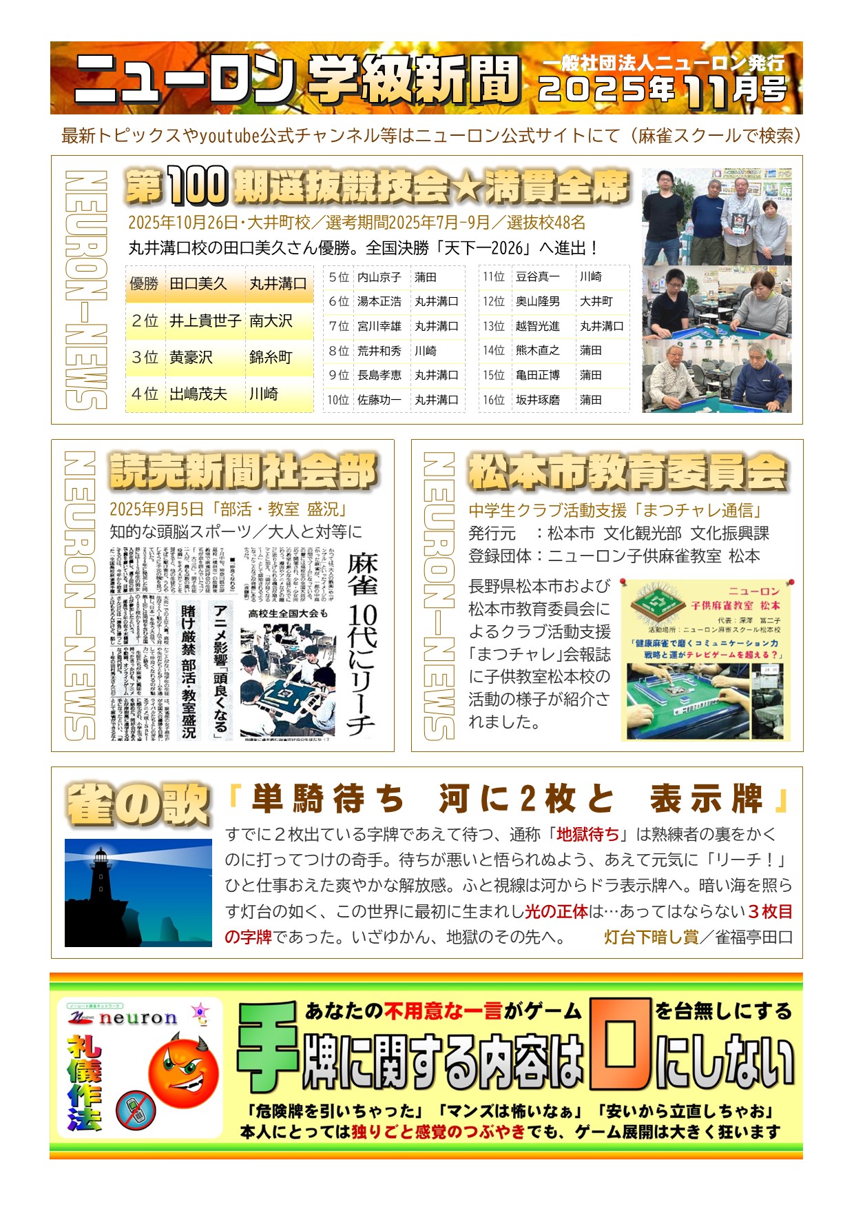 概要:ニューロン麻雀スクール提携校にて受講生に毎月配布している定期刊行物