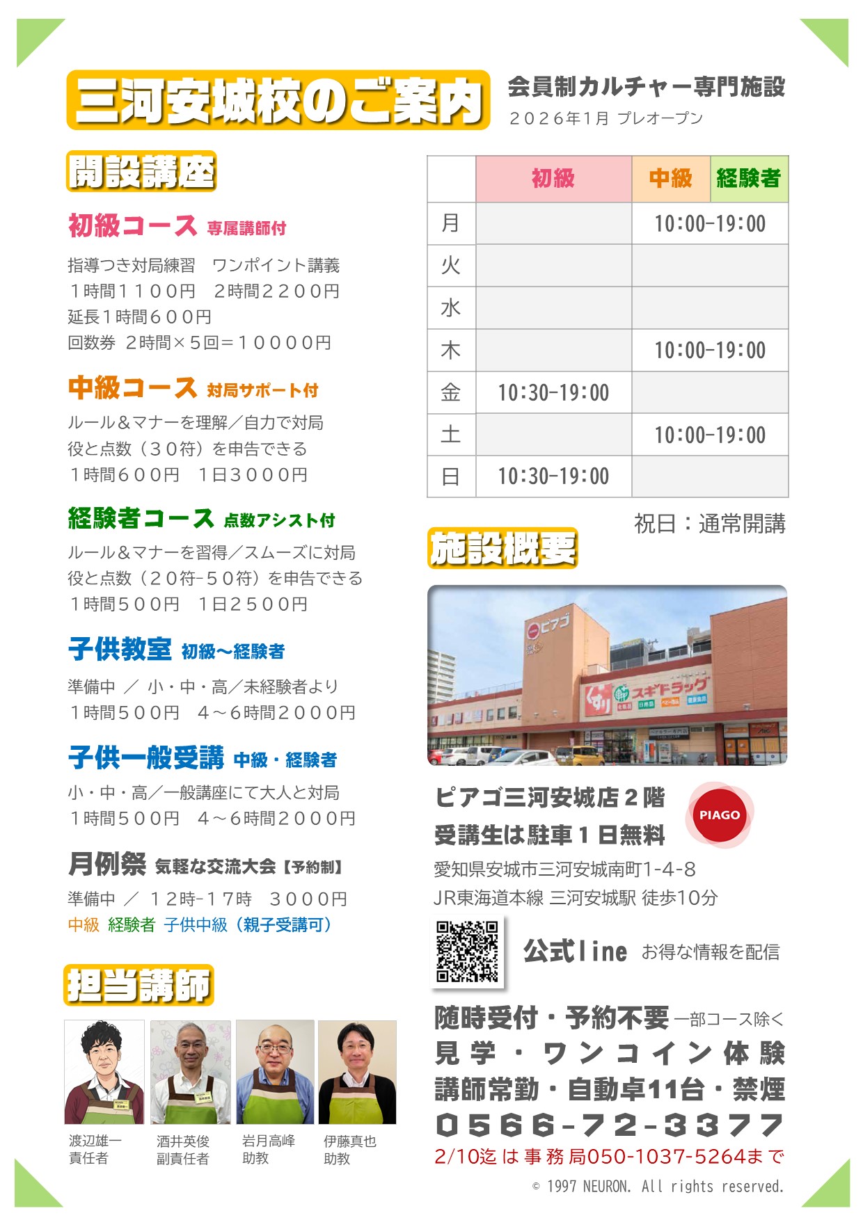 2026年1月17日(土曜)、三河安城駅前「ピアゴ三河安城店」2階にて開校