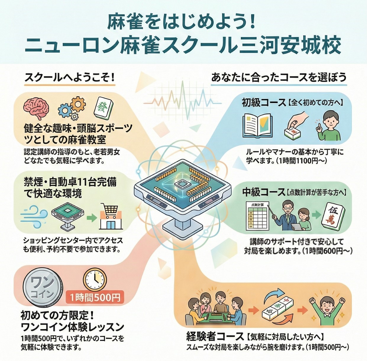 🔶健全な趣味としての麻雀を🔶認定講師の指導のもと🔶子供から大人まで🔶気軽に学んで楽しめる🔶会員制カルチャー教室です