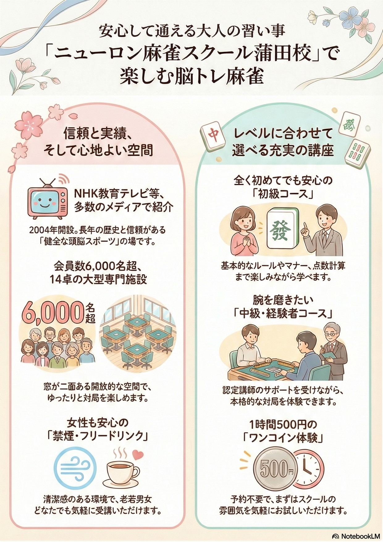 🔶健全な趣味としての麻雀を🔶認定講師の指導のもと🔶子供から大人まで🔶気軽に学んで楽しめる🔶会員制カルチャー教室です