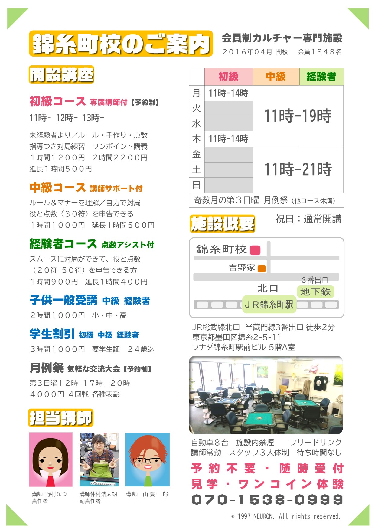 since2016 登録会員1848名両国校移転ニューロン麻雀スクール錦糸町校