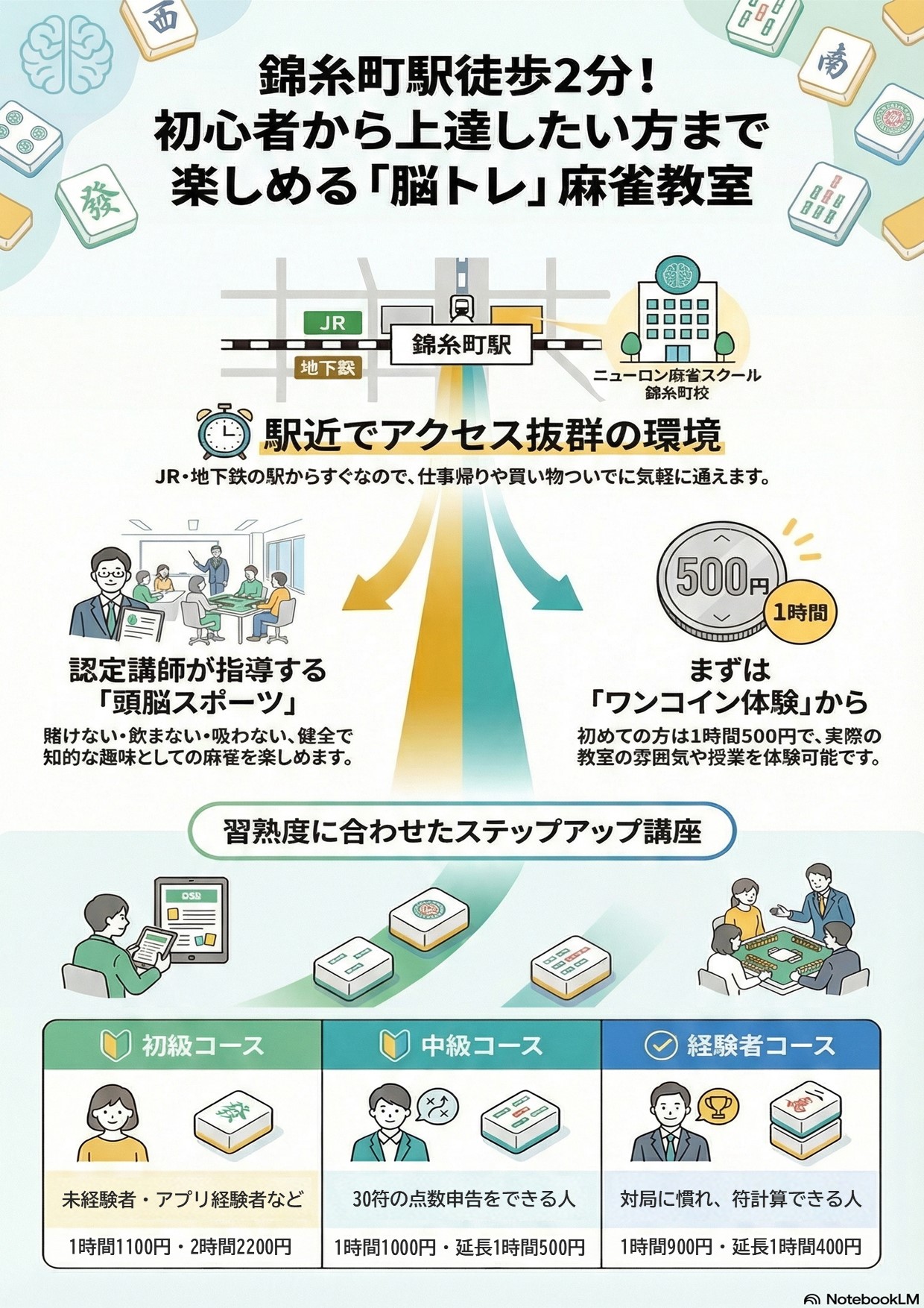 - ニューロン麻雀スクールを初めて受講する18歳以上の方(非会員)※18歳未満は子供麻雀教室