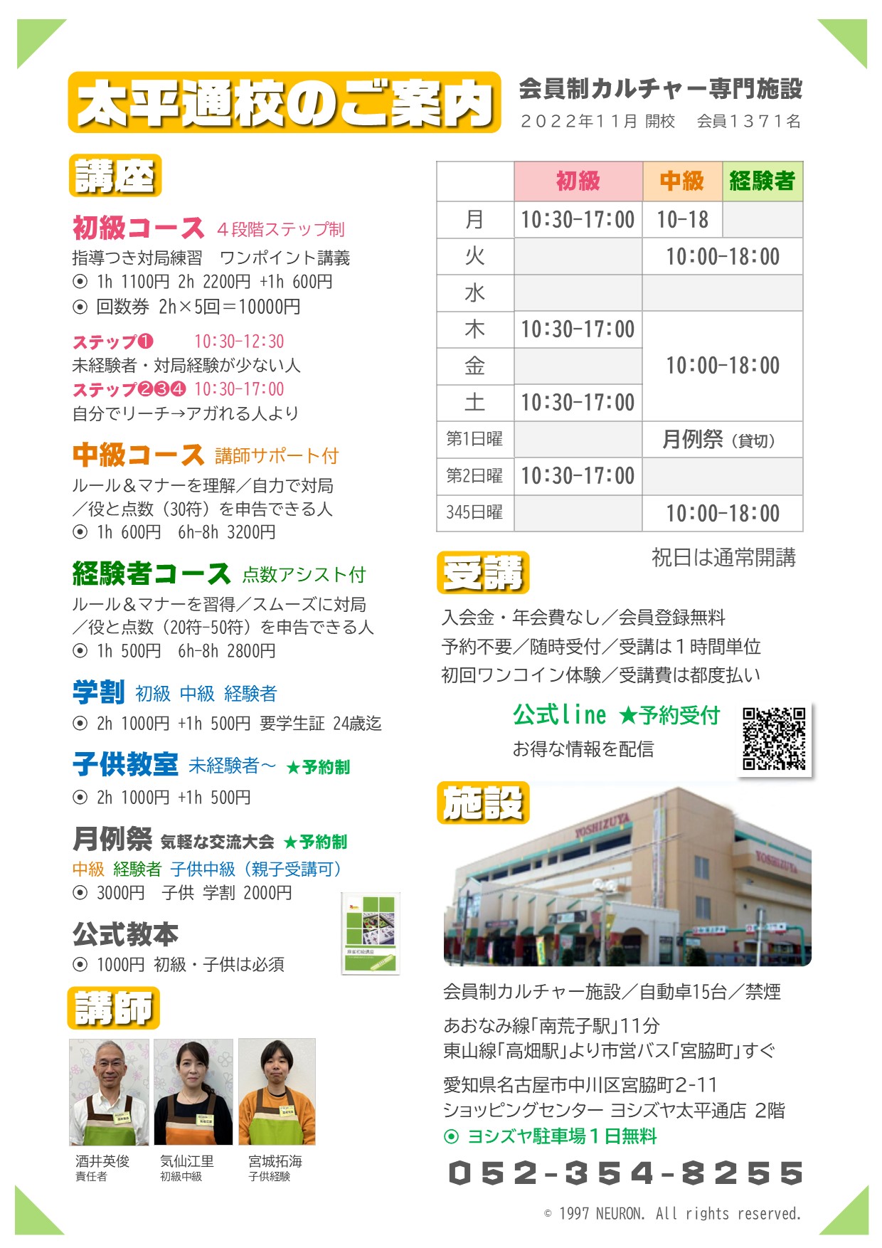 since2022 登録会員1102名名古屋市内ショッピングセンターニューロン麻雀スクール太平通校